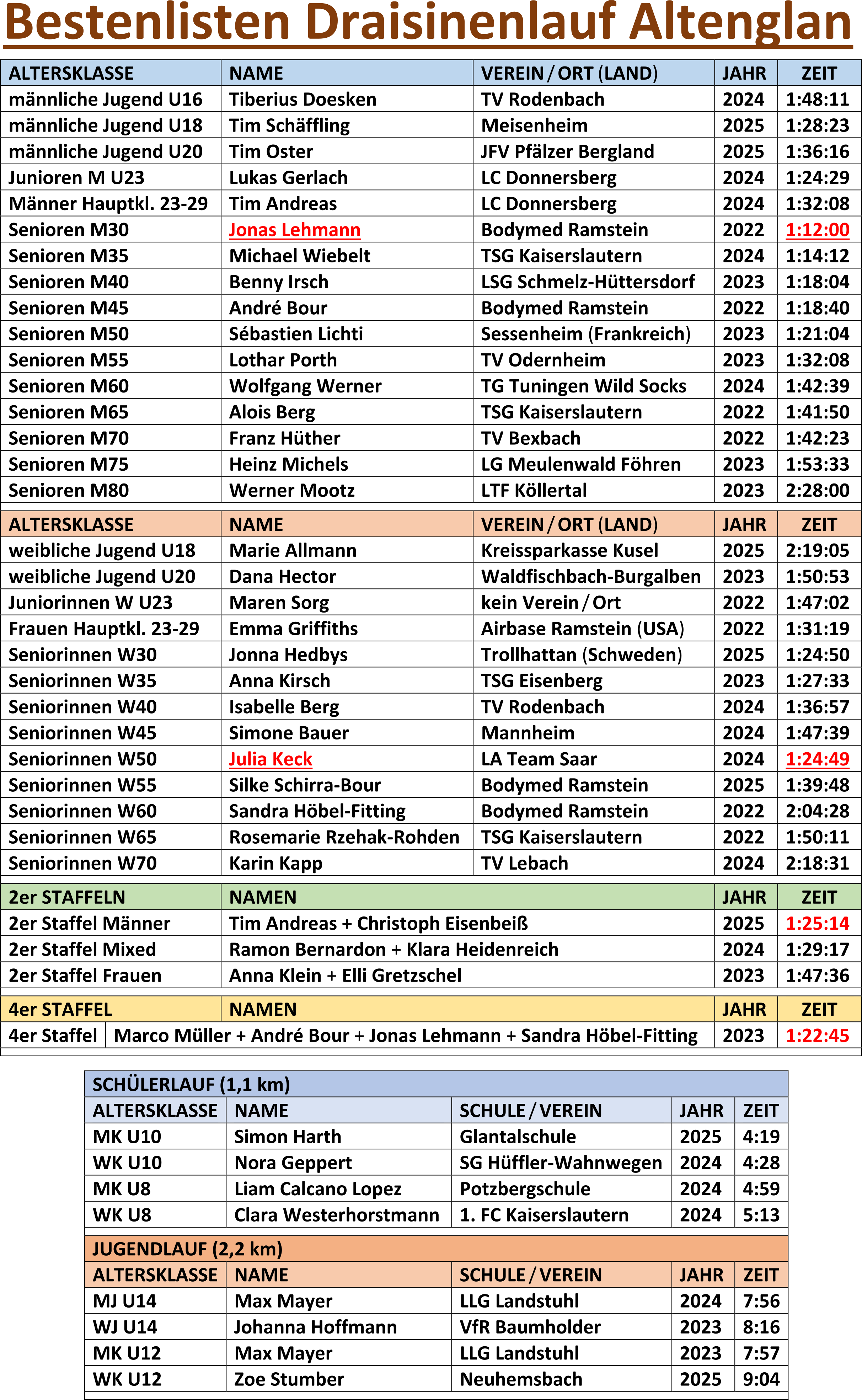 | Start Schülerlauf (eine Runde) | 10.15 Uhr |